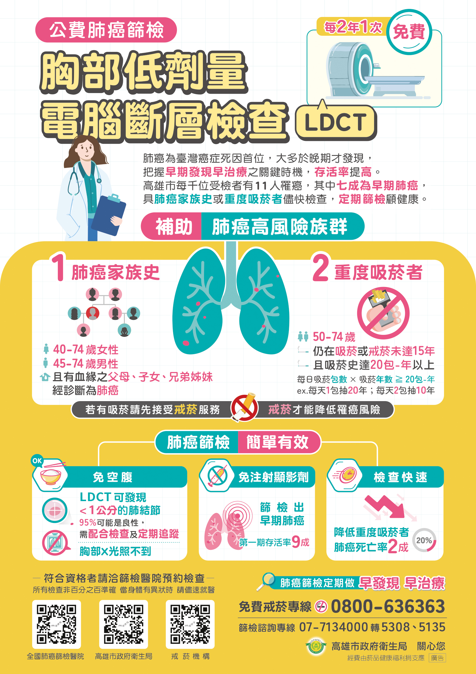 (二) 重度吸菸者:50至74歲吸菸史達20包-年以上,仍在吸菸或戒菸未達15年之重度吸菸者。篩檢資格:40-74歲女性(民國41-75年出生)每二年一次